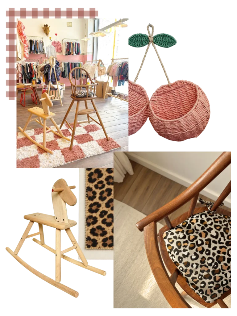 Mobiliers pour enfant, chinés et rénovés, faisant écho au concept de revalorisation de la boutique et à son univers pétillant, actuel.