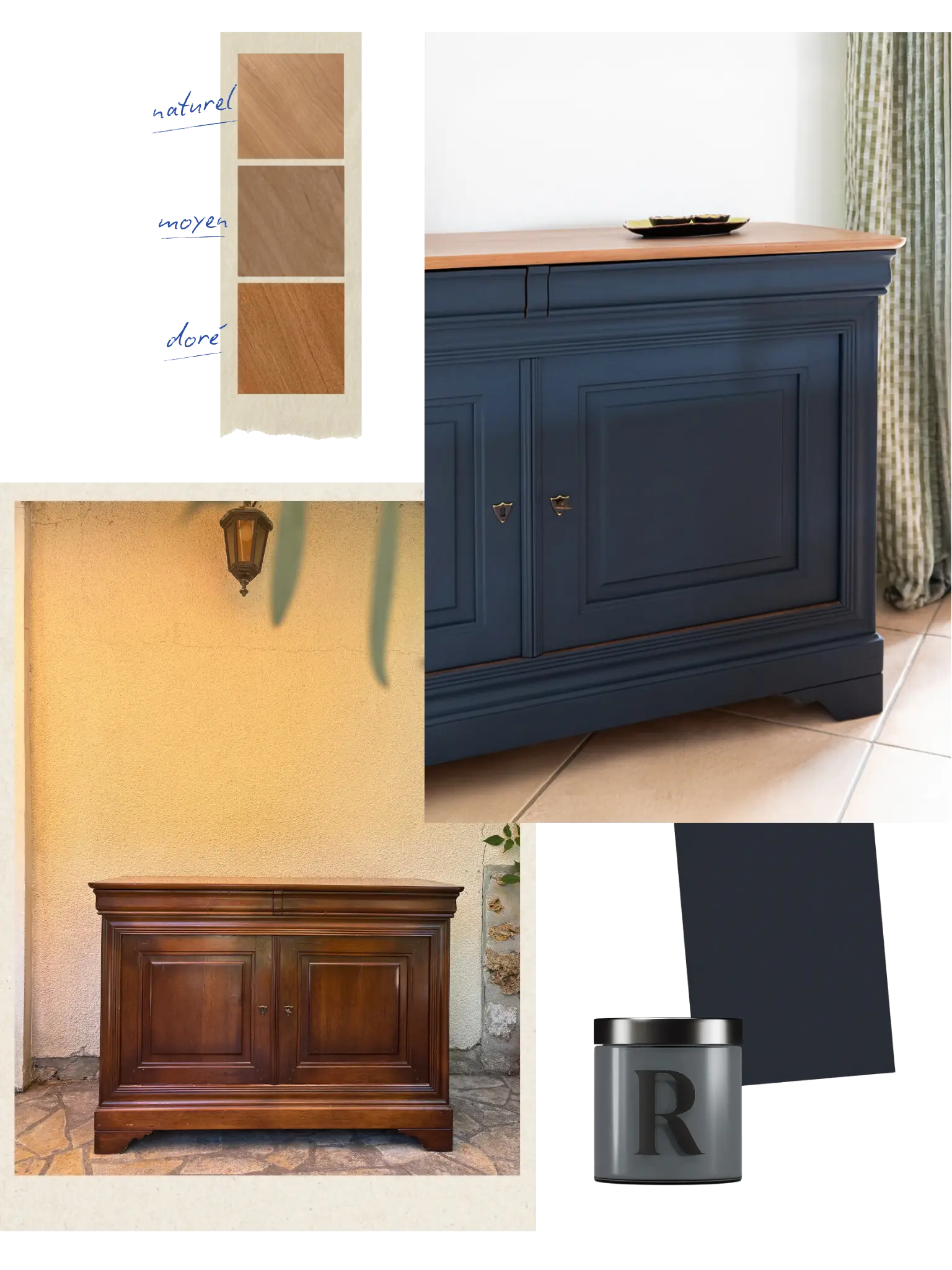 Rénovation d’un buffet appartenant déjà aux propriétaires, conservé pour ses qualités fonctionnelles et réinscrit dans une composition intérieure cohérente.